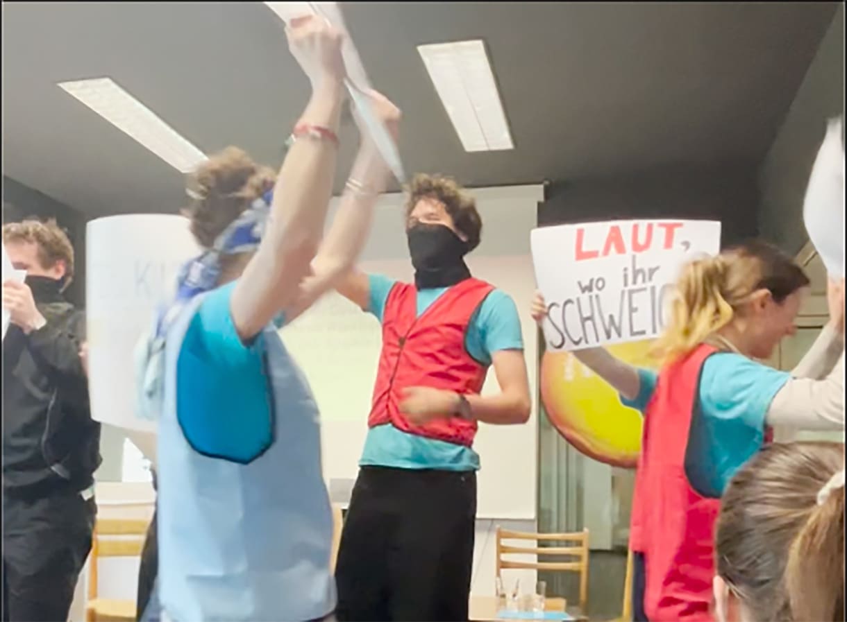 „Laut, wo ihr schweigt!“, „Laut, wo ihr schweigt!“ … mit diesem SprechChor „störten“ sechs Mitglieder des Jugendbeirats von Unicef (Kinderhilfswerk der Vereinten Nationen) den Auftakt zu einer Podiumsdiskussion am zweiten Tag des „Klimagipfels“. Der fand im Rahmen der aktuell – bis 10. Mai – laufenden zweiten Klima Biennale im Funkhaus, einst ORF-Wien-Arbeits- und Sendestätte statt. Nur wenige Gehminuten entfernt vom Karlsplatz, einem der öffentlichen Hotspots des Festivals das sich vor allem künstlerisch mit Klimawandel, -krise, – katastrophe … auseinandersetzt.