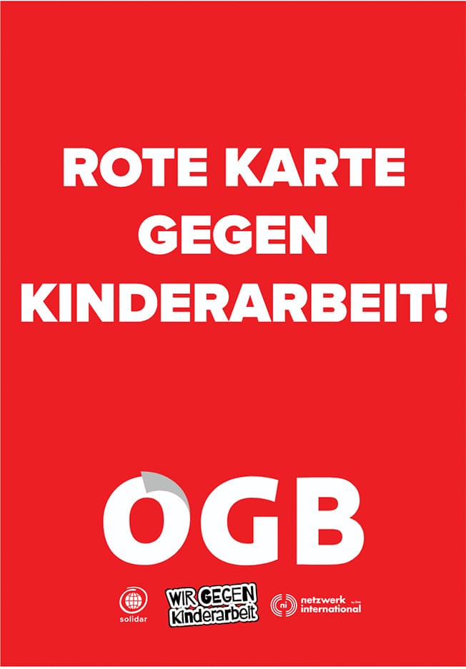 Österreich müsste Gesetze beschließen, dass der Verkauf von Waren aus Kinderarbeit verboten ist, lautet eine der zentralen konkreten Forderungen. Mit der Kampagne „Wir gegen Kinderarbeit!“ soll dieser Ungerechtigkeit, die natürlich auch gegen die Kinderrechtskonvention verstößt, die aus dem Fußball bekannte „Rote Karte“ für unsportliches Verhalten, gezeigt werden.